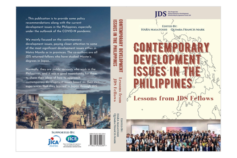 The book, "Contemporary Development Issues in the Philippines: Lesson from JDS Fellows", accounts the experiences of Filipino scholars (hereby referred to as JDS fellows) during their studies in premier Japanese universities and exposure to Japanese life and culture under the
