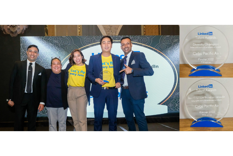 Cebu Pacific (PSE: CEB) received the Best Employer Brand, the highest award at the LinkedIn Talent Awards, in recognition of its strong commitment to engage talents in a meaningful way.