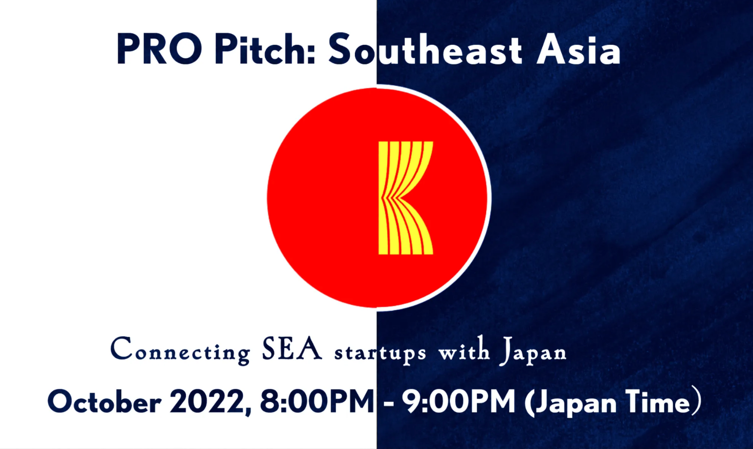PRO Pitch: Southeast Asia will be held on October 4, 2022, 8:00PM-9:00PM (Japan Time) via Zoom with 5 mins Pitch & 5 mins Q&A