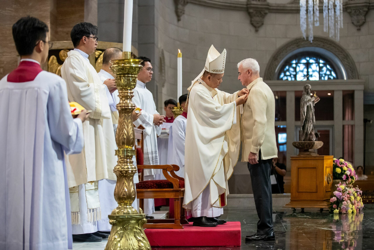 During a Mass at the Manila Cathedral on Wednesday, Cardinal Jose Advincula of Manila bestowed the Cross of Honor upon Fernando Zobel de Ayala, Ramon del Rosario Jr., Manuel Pangilinan, Maria Goolsby, and Arnulfo Veridico, who are long-standing supporters of Caritas Manila.