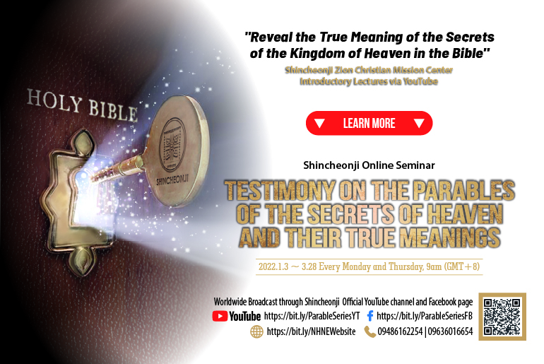 As the Bible says in the New Testament, the secrets of the kingdom of heaven are hidden in parables (Mt 13:34-35) but will be made known plainly when the time comes (Jn 16:25). Through this webinar, the true meaning of the parables of the kingdom of heaven at the time of Revelation’s fulfillment will be clearly answered according to the Bible and will be shared with the whole world.