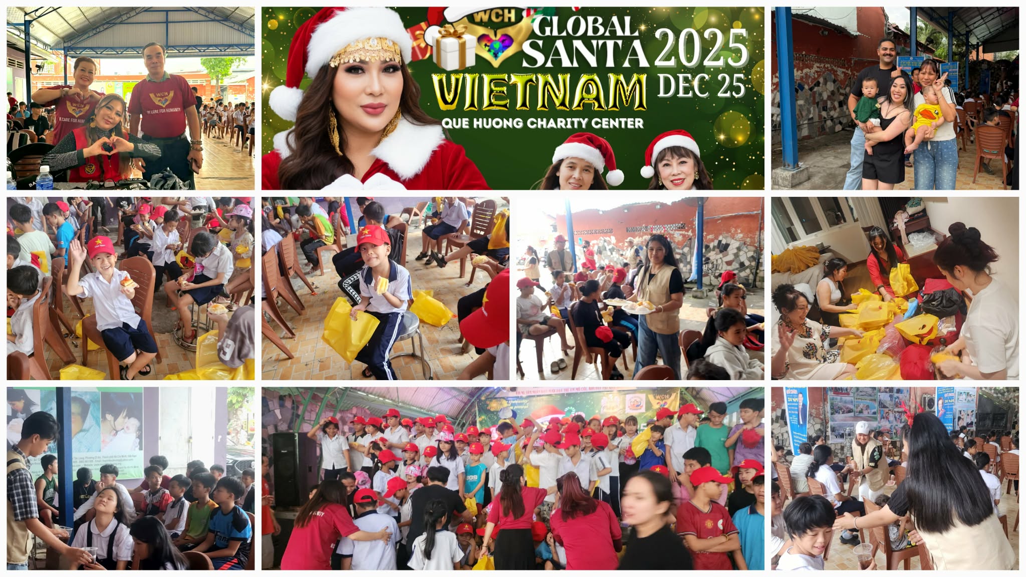 On Christmas Day 2025, We Care for Humanity (WCH) and the Torres Clan brought joy to 400 orphans at Trung Tam Nhan Dao Que Huong in Ho Chi Minh City. Led by HRH Queen Maria and Bai Huong Vo, the "Global Santa" mission combined family travel with philanthropy to feed and gift the children.
