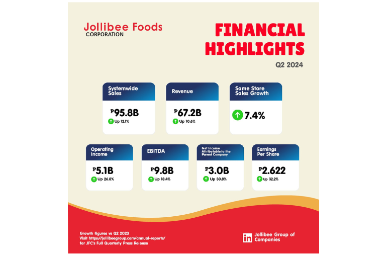 Jollibee Foods Corporation (JFC, also known as Jollibee Group) one of the largest Asian food service companies, today reported its financial results of operations for the second quarter ended June 30, 2024, based on its Unaudited Consolidated Financial Statements.