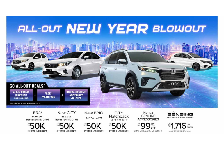 Favorite All-New BR-V, New Brio, New City, or a City Hatchback this 2024 are entitled to at least one (1) of the available packages under the All-Out New Year Blowout deals and can also personalize the style of your Honda car with offers of up to 99% discount on select Honda Genuine Accessories.