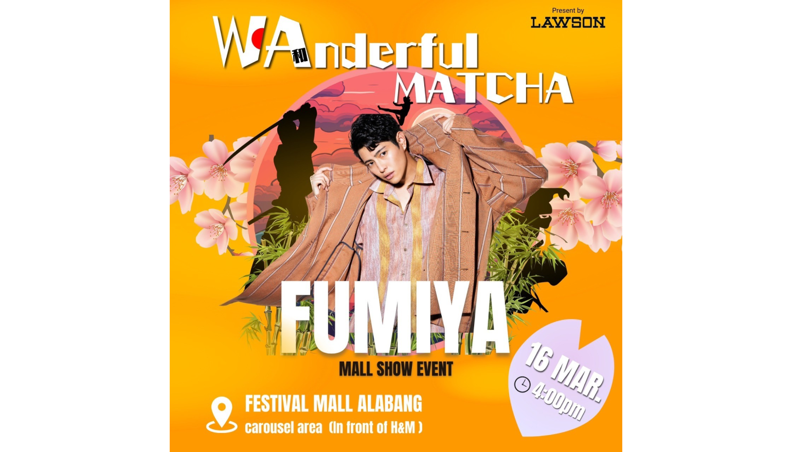 LAWSON X Fumiya. The event, scheduled for March 16th at Festival Mall Muntinlupa, promises a delectable experience through exclusive treats and a lively showcase of Fumiya's artistic flair.
