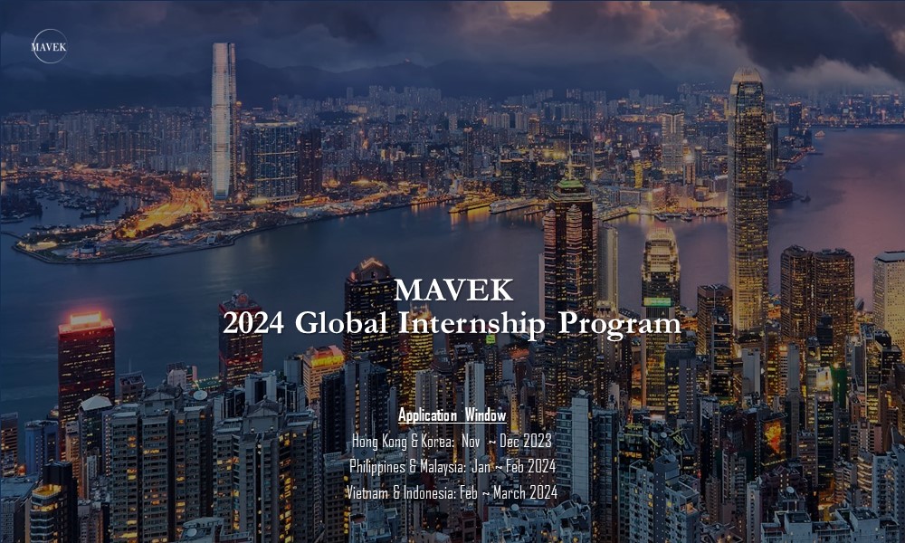 This internship program, conducted in 12 top-tier universities across 6 Asian countries, presents a rare chance for the interns who excel in this program to proactively deliver impact to global institutions through Mavek’s horizontal culture. Interns selected for this program will experience the dynamic environment of Mavek's international operations, gaining profound insights into cross-border transactions and the intricacies of global financial markets. The Highest-performing interns will have the opportunity for permanent placement and potential assignments to Mavek's offices across the APAC region.