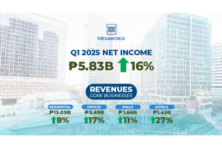 Megaworld grew net income by 16% to ₱5.83B in Q1 2025, driven by solid gains in residential, leasing, and hotel operations.