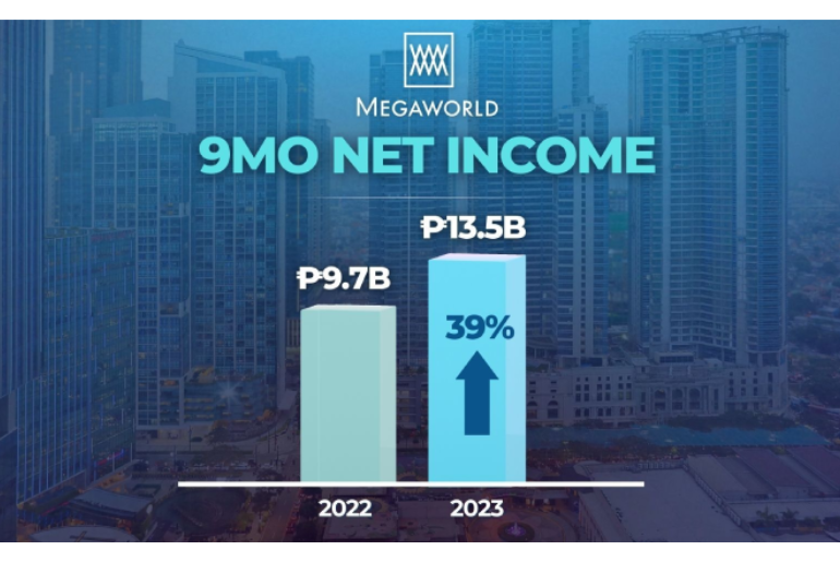 Megaworld's net income soar to P13.5-billion during the first nine months of the year from P9.7-billion last year, up 39% and pulling away even farther from its pre-pandemic levels.