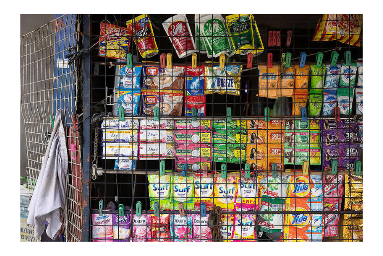 Sachets are widely used across Asia to sell small quantities of products like shampoo, soap, toothpaste, laundry detergent, fabric conditioner, and coffee, among other consumables. © Jilson Tiu / Greenpeace