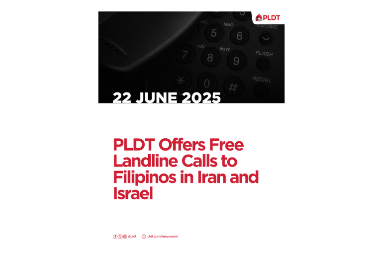 June 22, 2025 – Manila — In light of ongoing developments in the Middle East, PLDT is offering free International Direct Dial (IDD) calls until June 25, 2025 (PHT) to Iran and Israel from the Philippines—via its landline network—to help Filipino families stay connected with their loved ones overseas.