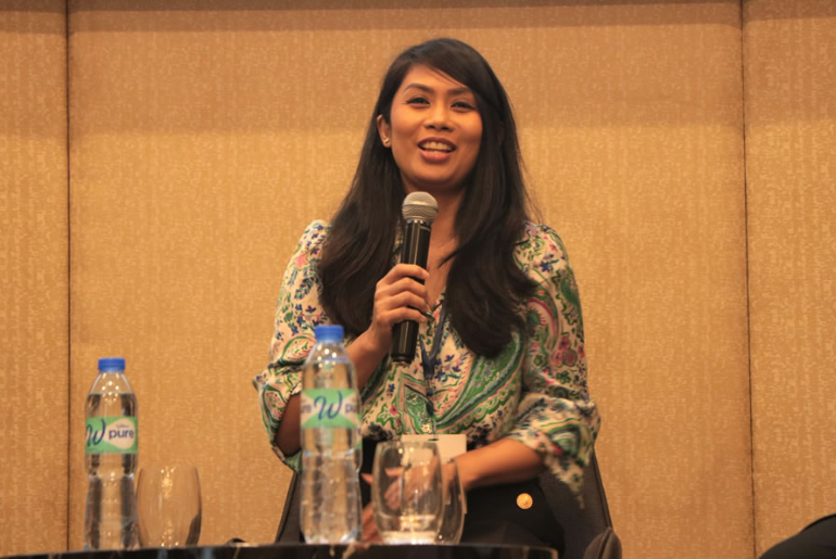 Stephanie Orlino, AVP and Head of Stakeholder Management at PLDT and Smart (middle), joins Elvin Uy, Executive Director at Philippine Business for Social Progress (left) and Sam Chittick, Country Representative of The Asia Foundation (right) during the panel discussion at the Industry Leaders' Conference on Private Sector Support for Early Grade Learning