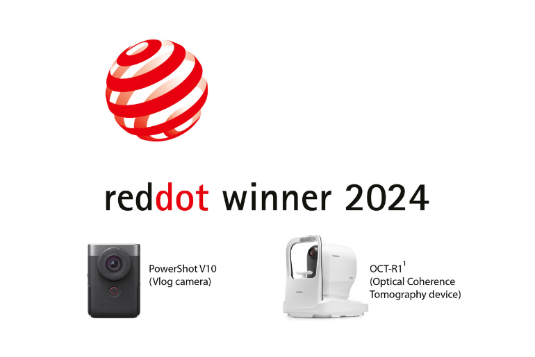 Canon Inc. proudly announced on 26 April 2024 that its innovative products, the “PowerShot V10” vlog camera and “OCT-R1” optical coherence tomography (OCT) device, have been honored with the prestigious Red Dot Design Award 2024 for Production Design to take place on 24 June 2024 in Essen, Germany.