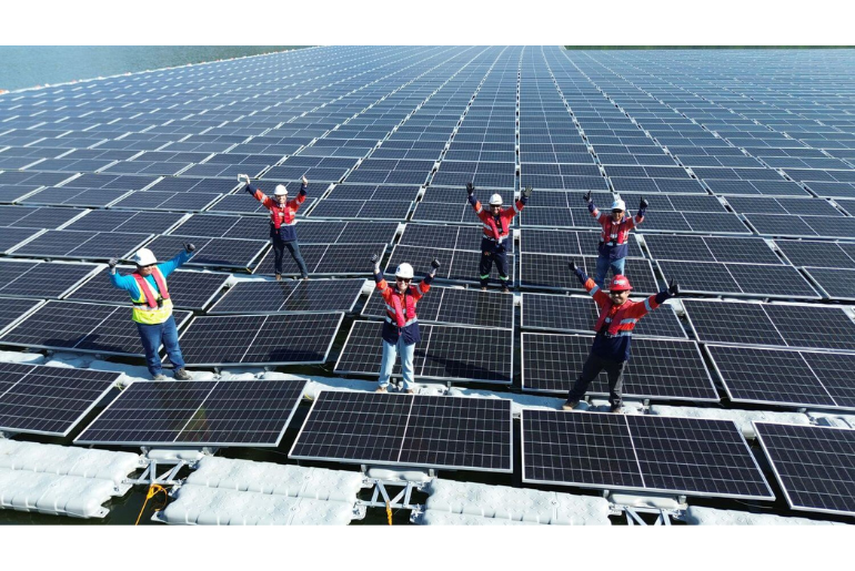 Carmen Copper Corporation’s 3 hectare floating solar facility at the Malubog Reservoir. The facility’s 8,540 solar panels generate 4.99 MW of clean renewable accounting for 10% of the copper mine’s power needs.