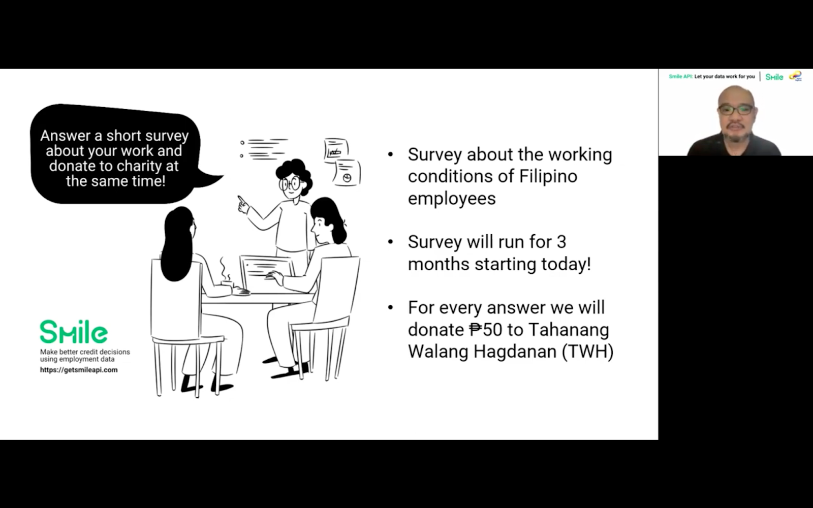 The short survey is part of Smile API's efforts in creating a win-win situation between workers, financial institutions and other businesses when it comes to availing of financial services and products, making better credit decisions, including but not limited to improving recruitment and hiring processes.
