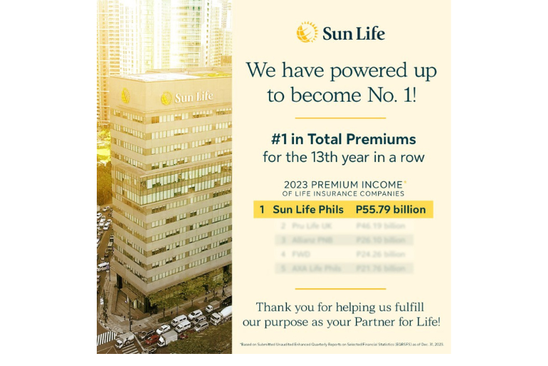 MANILA, PH – Sun Life of Canada (Philippines), Inc. continues to reign as the no. 1 life insurance company for 13 consecutive years after garnering PHP 55.79 billion in Total Premium Income.