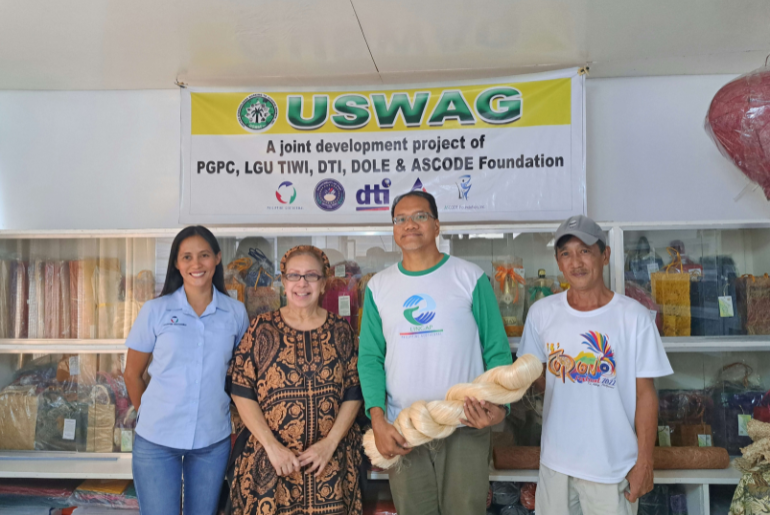 PGPC, seeing these women needed support, provided resources in partnership with DTI Albay Province, including training on threading abaca fiber, product development, and budgeting. These women eventually formed a group called United Stakeholders Working to Achieve Growth or USWAG, an apt name which stems from the local word ‘uswag’ which means ‘to progress’.