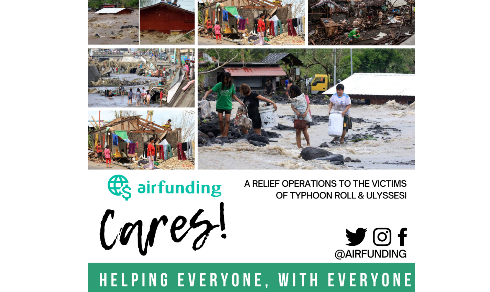 Airfunding Cares is committed to raising $ 10,000 to help more people in the Philippines especially the Cagayan and Tuguegarao province who suffered the most because of the flooding brought about by typhoon Ulysses.