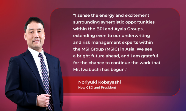 BPI/MS Insurance Corporation (BPI MS), the non-life insurance joint venture of the Bank of the Philippine Islands (BPI) and Mitsui Sumitomo Insurance Company, Ltd. (MSI), has appointed Chief Governance Officer Mr. Noriyuki Kobayashi as President and CEO, effective April 1, 2025.