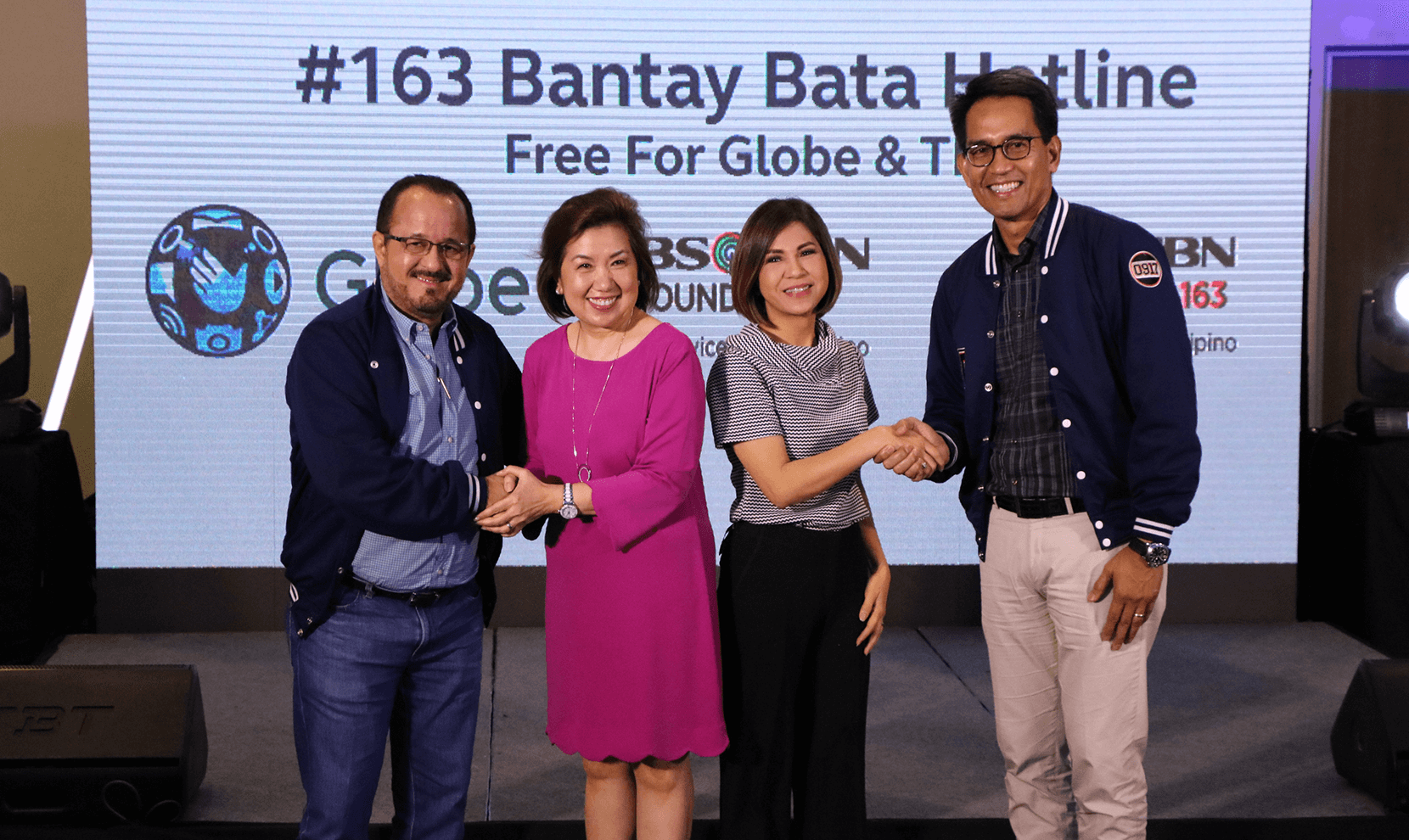 Globe and ABS-CBN Foundation Inc. have joined forces to advocate for the health and safety of all Filipino children by offering toll free calls to Bantay Bata #163 helpline for all Globe and TM mobile phone users beginning November 18, 2019.