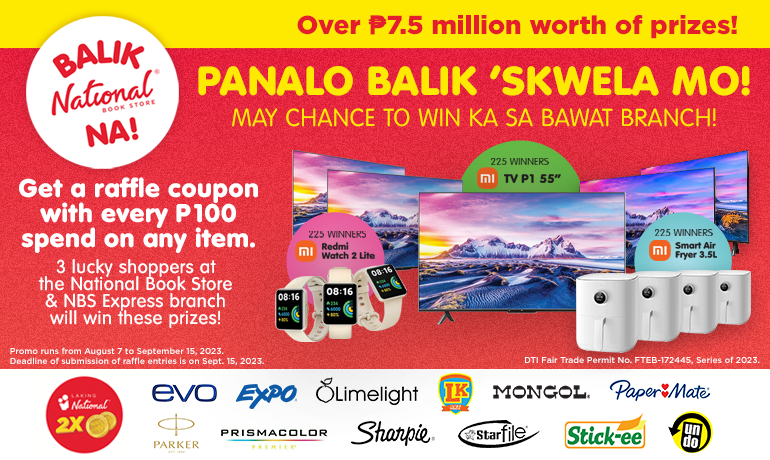 Back-to-school shopping is more sulit at National Book Store with the Balik ‘Skwela Super Sorpresa Raffle. Get an entry with every PHP100 spent on any items, and you can be one of 3 winners at every NBS and NBS Express branch nationwide to receive a 55” smart TV, air fryer, and smart watch.