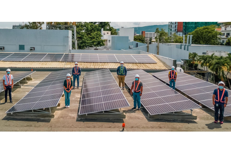 Aerial shot showing the installed solar rooftop panels at PLDT Jones in Cebu City