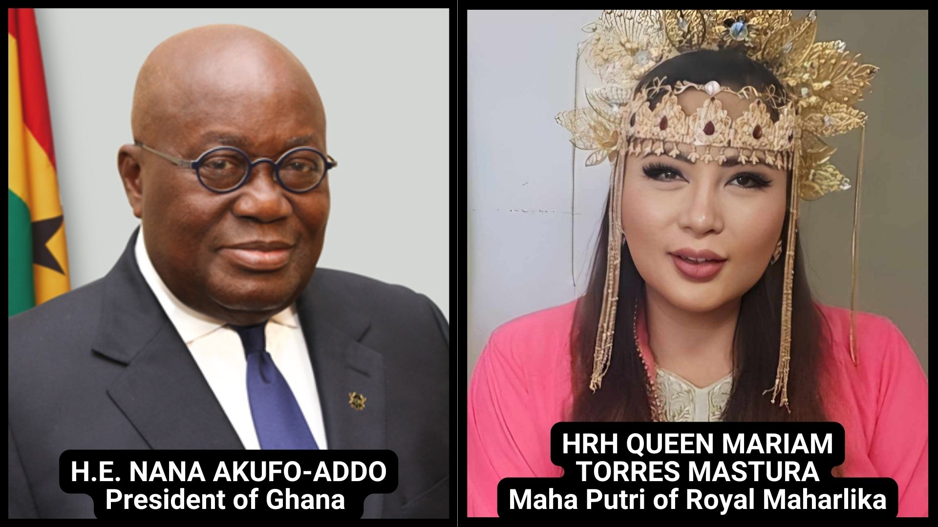 Accra, Ghana - November 14, 2024 - In a traditional royal atmosphere, where a chief is on the transition of becoming a paramount chief, numerous esteemed figures from Ghana have assembled, including the honorable President Nana Akufo-Addo. During this occasion, a meet-and-greet was organized between the president and Queen Mariam Leonor Torres Mastura, known as Bae Mompong sa Magindanaw and Maha Putri of the Royal House of Luzon Tagalog.