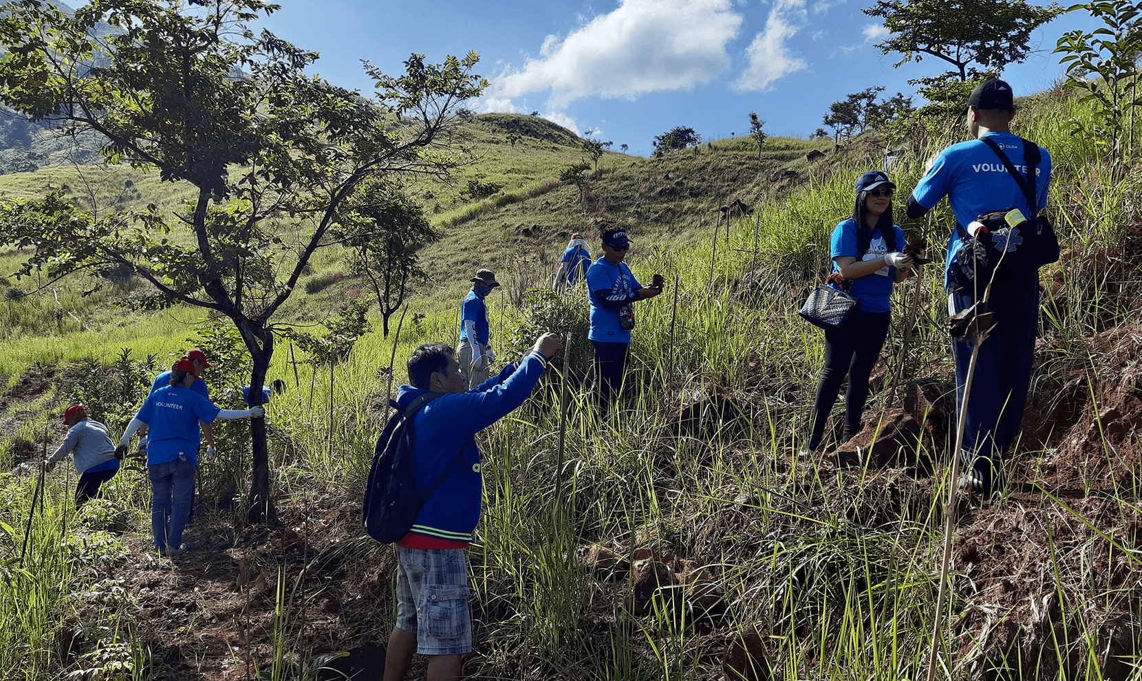Globe and Singtel Volunteers team up to plant different species of indigenous trees at the Vetiver terraces in Iba, Zambales.