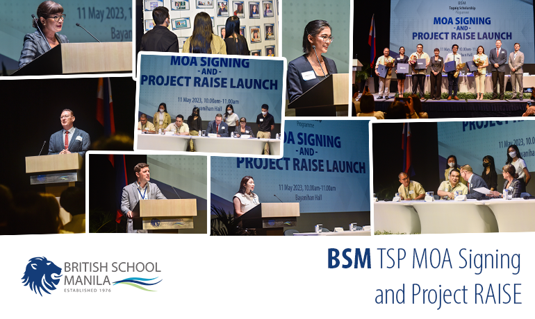 A tripartite memorandum of agreement between the British School Manila, DepEd Taguig-Pateros and World Vision Development Foundation, will see the school commit funding, guidance and student and teacher participation to Project RAISE - “Reading Activities to Improve and Shore Education”.