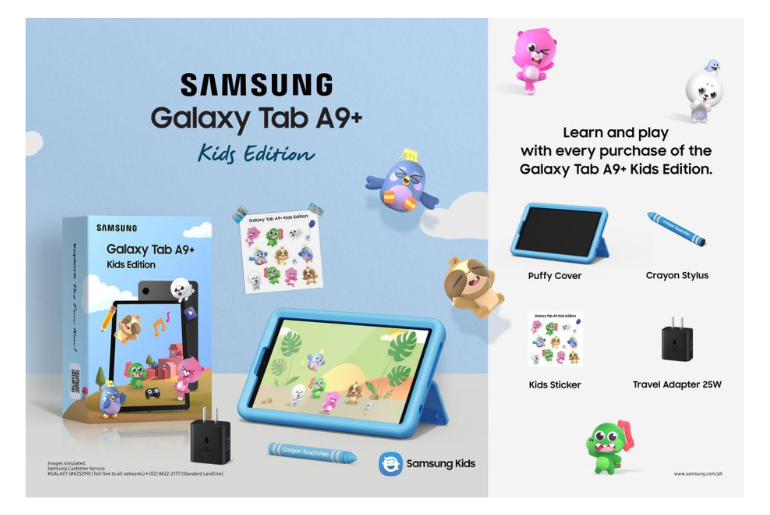 Samsung offers you the perfect playmate to keep your kids entertained, learning, and growing wherever you are. Get the Samsung Galaxy Tab A9+ Wifi Kid’s edition complete with a puffy case to better protect the tablet, a crayon stylus, stickers for personalization, and a travel adaptor from May 15, 2023, to May 31, 2024, at Lazada and Shopee. You can also grab these amazing deals at Abenson.com, MemoXpress Online, Samsung Official Store on TikTok Shop or https://www.samsung.com/ph/tablets/galaxy-tab-a9/buy/
