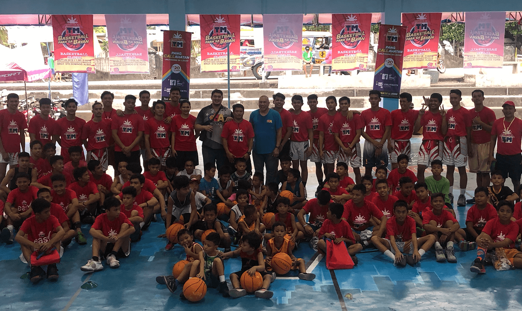 Former national player and current PBA head coach Pido Jarencio joined the participants for a group photo after the successful TM Para sa Bayan Basketball Clinic held recently in Albay.